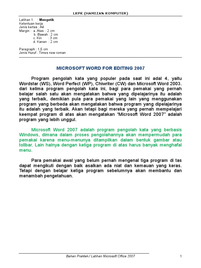 Latihan Microsoft Word 2007 Pdf / Soal Latihan Ms Word Pdf Soal Soal Latihan Ms Word 2007 2011 Susmix24 Co Cc Oleh Susiantoro Fax 0354 6998iman8kediri Gmail Nama Kelas No Absen Sma Course Hero - Microsoft word is the word processor of the suite.